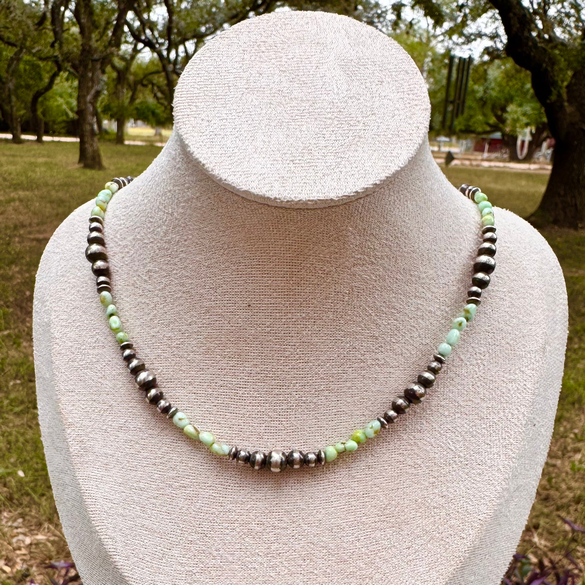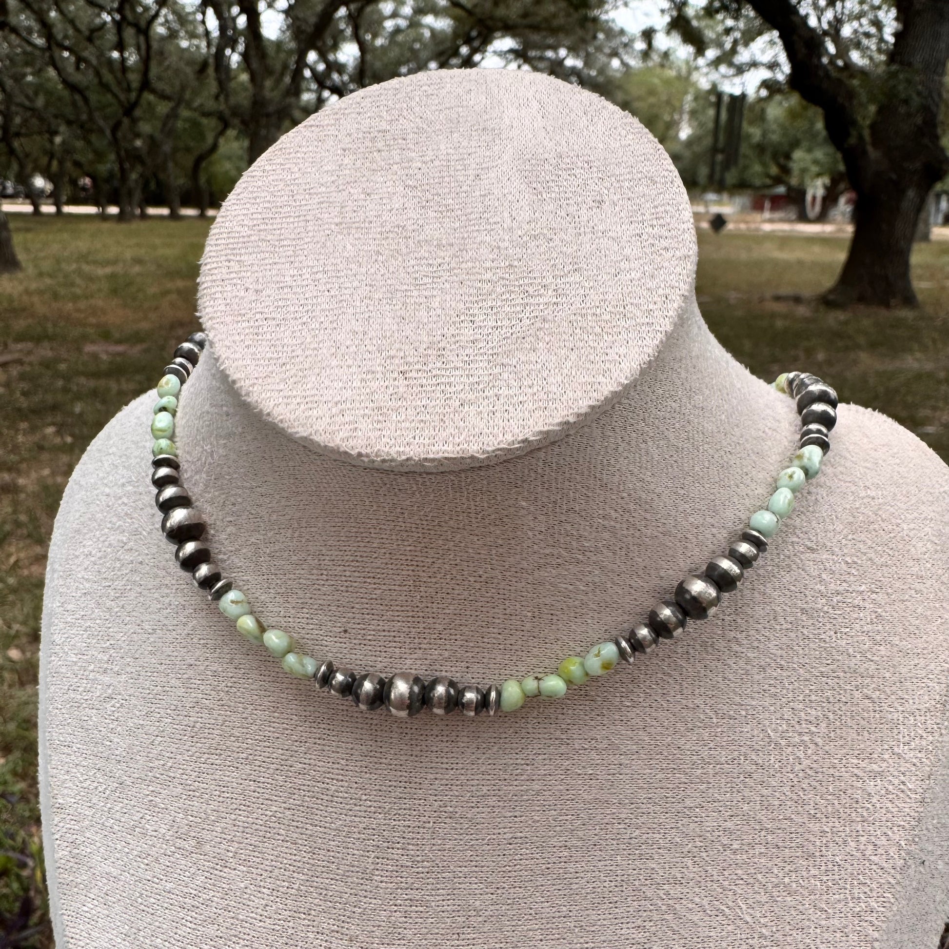 Palamino beads with sterling silver pearls graduating in size 3-5mm, lobster claw clasp.
